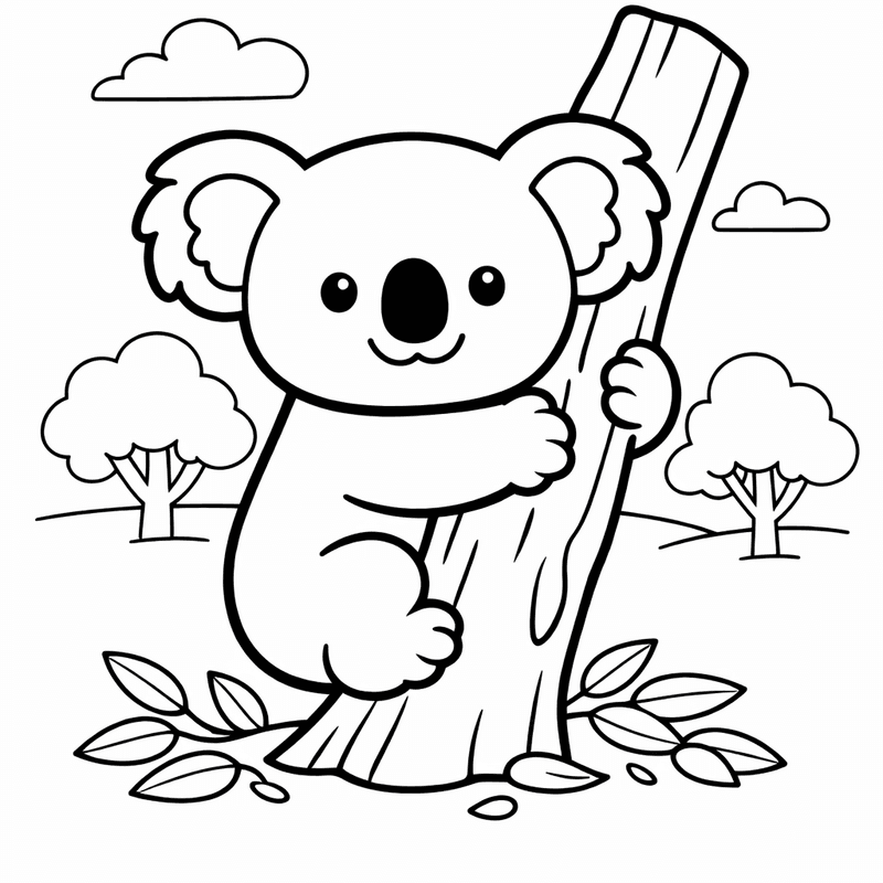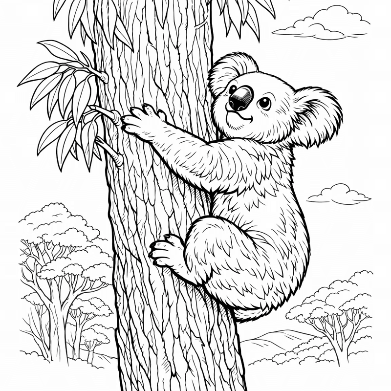Koala Coloring Page — A Koala Hugging A Eucalyptus Tree Branch