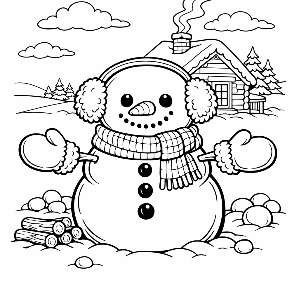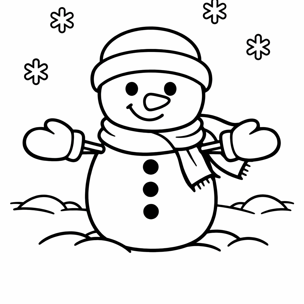 Snowman Coloring Page — Object Only: A Cute Snowman With Clean Outlines, No Background