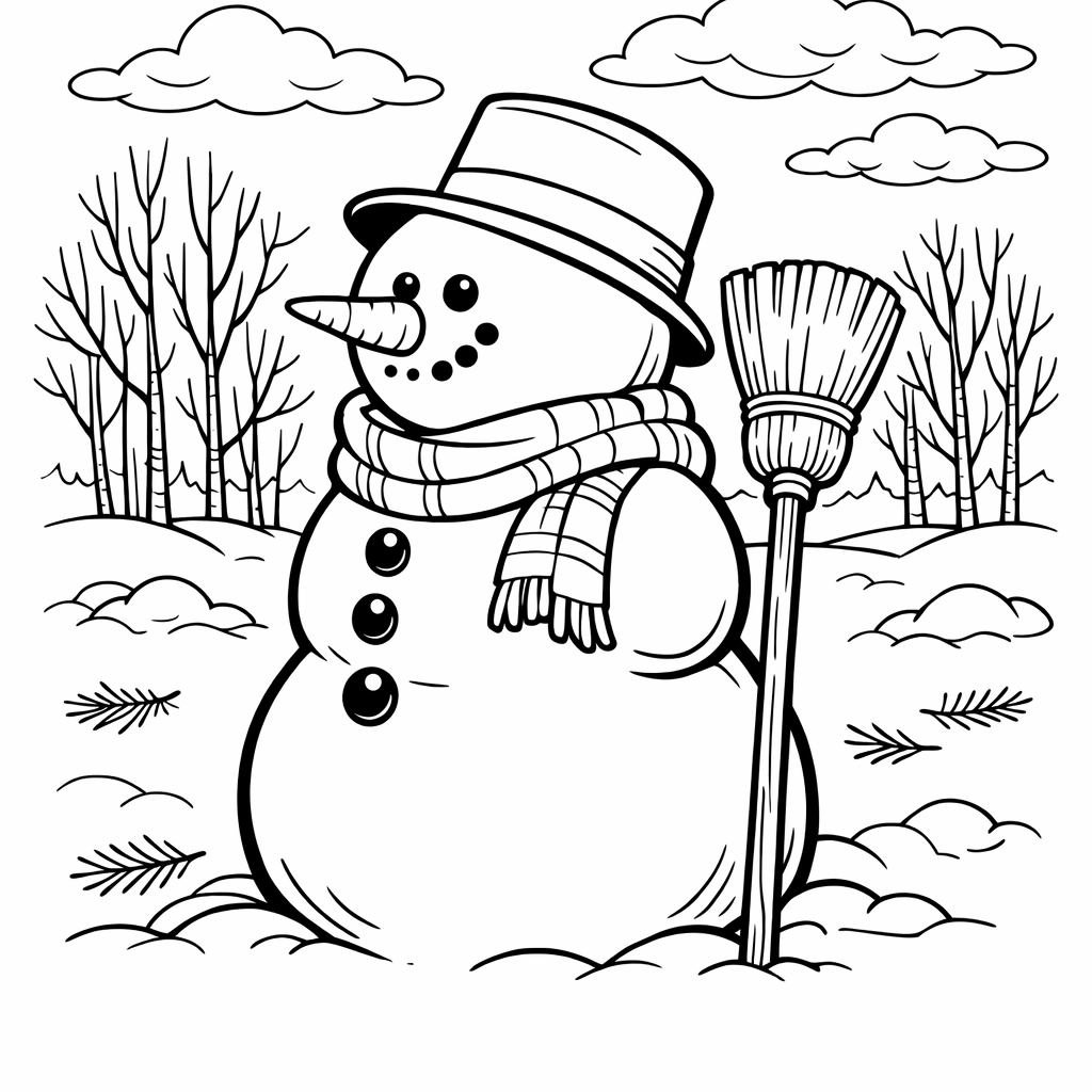 Snowman Coloring Page — Object Only: A Cute Snowman With Clean Outlines, No Background
