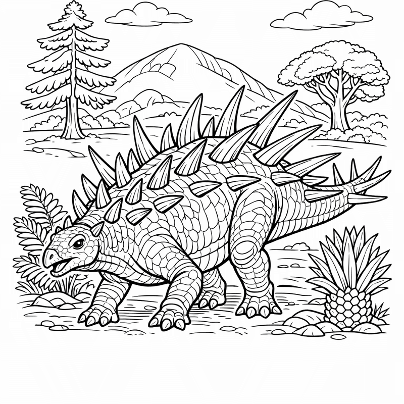 Free printable kentrosaurus coloring page for kids. Kentrosaurus In Forest. Print in one click, Level: advanced.