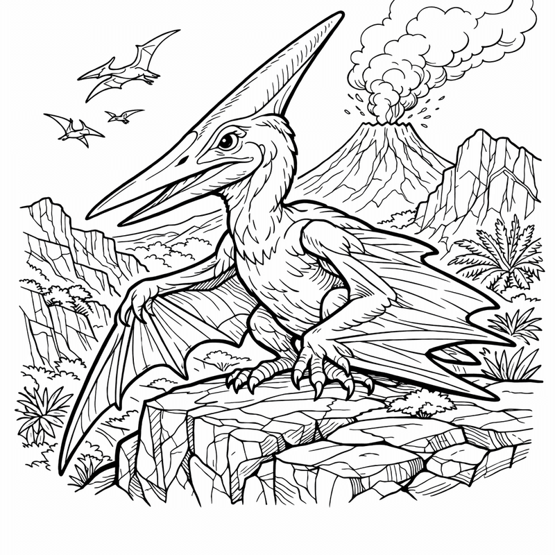 Free printable pteranodon coloring page for kids. Object Only: A Cute Pteranodon With Clean Outlines, No Background. Print in one click, Level: advanced.