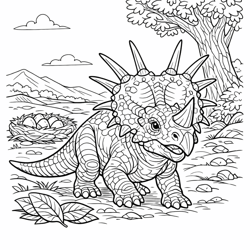 Free printable styracosaurus coloring page for kids. Styracosaurus In Meadow. Print in one click, Level: advanced.