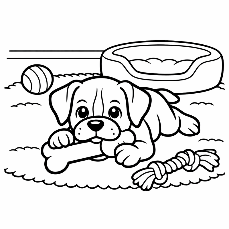 Boxer Coloring Page — A Boxer Puppy With Floppy Ears Chewing A Toy