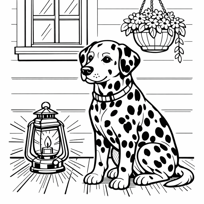 Dalmatian Coloring Page — A Dalmatian With Spots Sitting Next To A Fire Hydrant