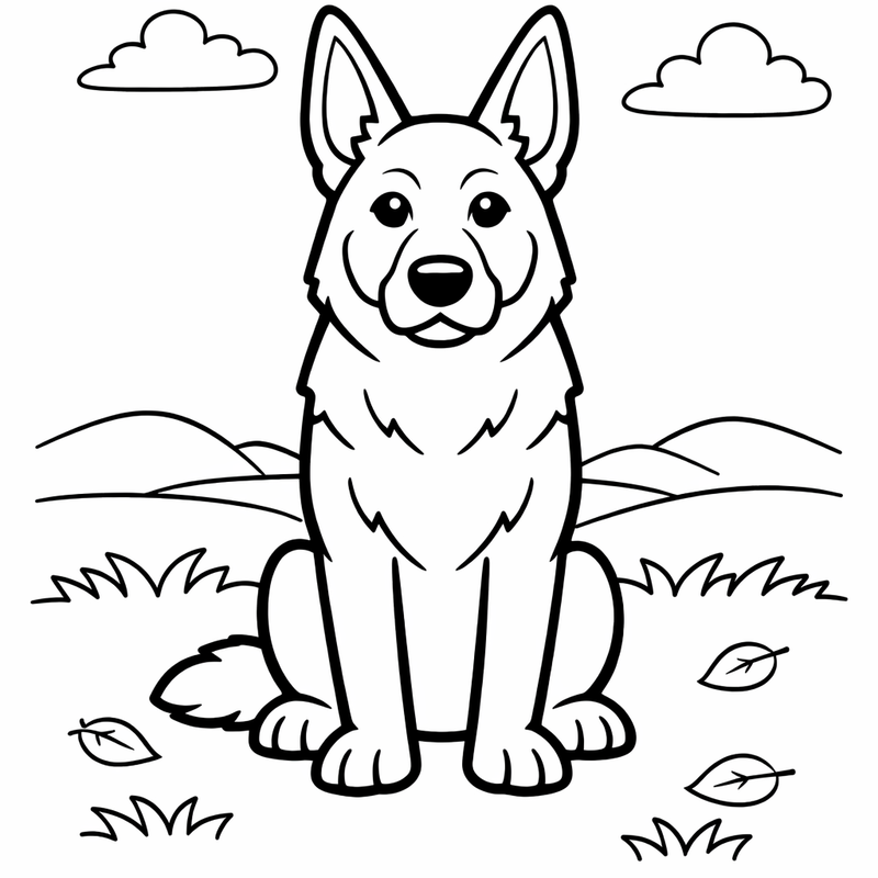 German Shepherd Coloring Page — Object Only: A Cute German Shepherd With Clean Outlines, No Background