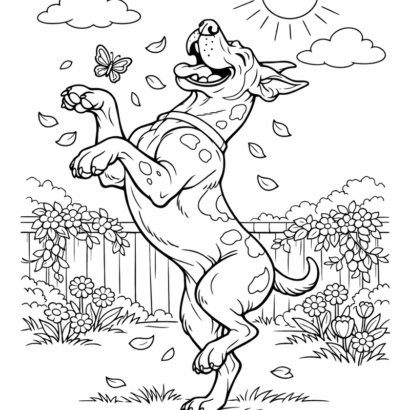 Great Dane Coloring Page — A Great Dane Puppy Tripping Over Its Own Long Legs