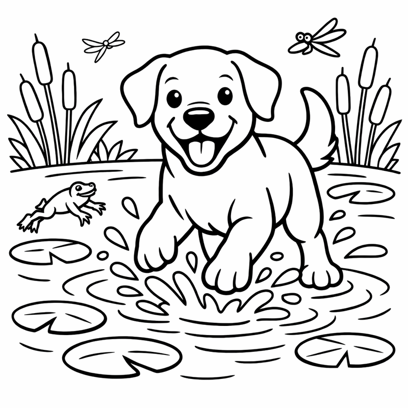 Labrador Coloring Page — A Labrador Retriever Playing In Water Splashing Happily