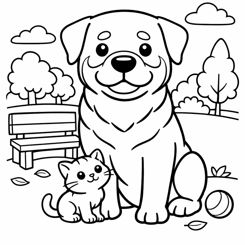 Rottweiler Coloring Page — A Rottweiler And A Small Kitten Being Friends