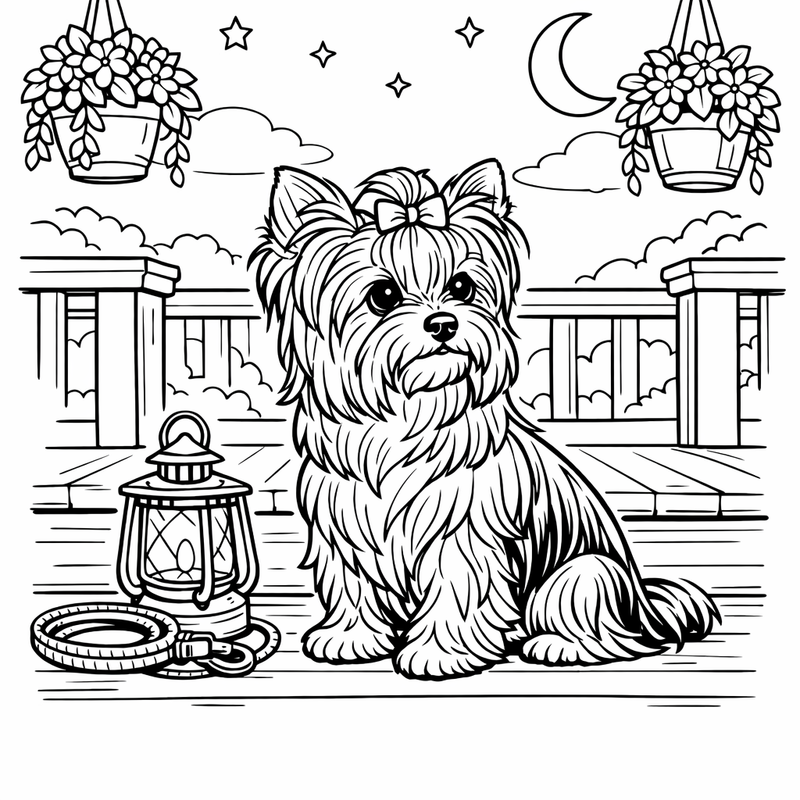 Yorkshire Terrier Coloring Page — A Yorkshire Terrier With A Silky Coat And A Tiny Bow