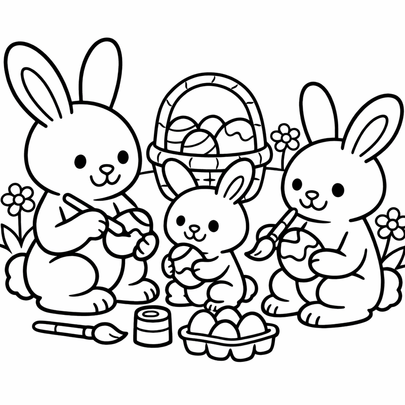 Bunny Family Coloring Page — A Bunny Family Painting Easter Eggs Together