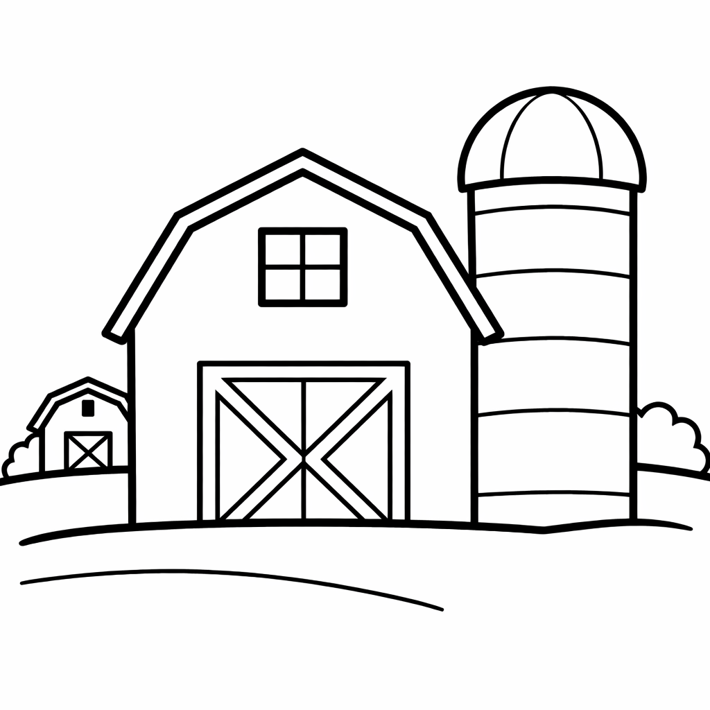 Barn Coloring Page — Object Only: A Cute Barn With Clean Outlines, No Background