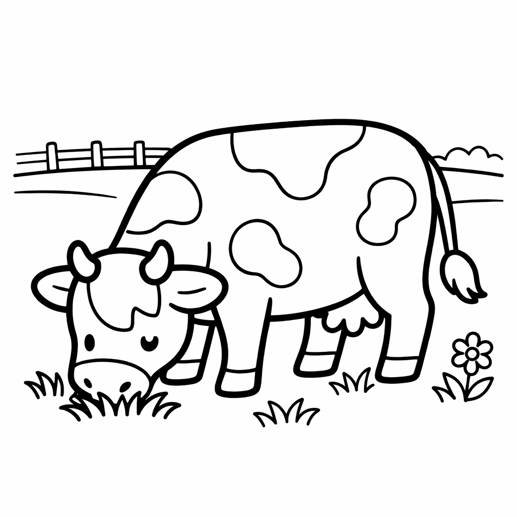 Free printable cow coloring page for kids. Cow In Field. Print in one click, Level: beginner.