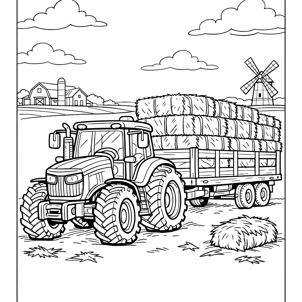 Tractor Coloring Page — Tractor And Hay