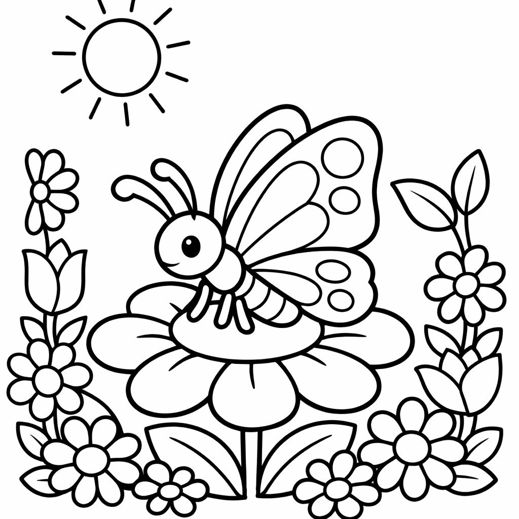 Free printable butterfly and flowers coloring page for kids. Object Only: A Butterfly With Floral Patterns Inside Its Wings, Clean Outlines, No Background. Print in one click, Level: beginner.