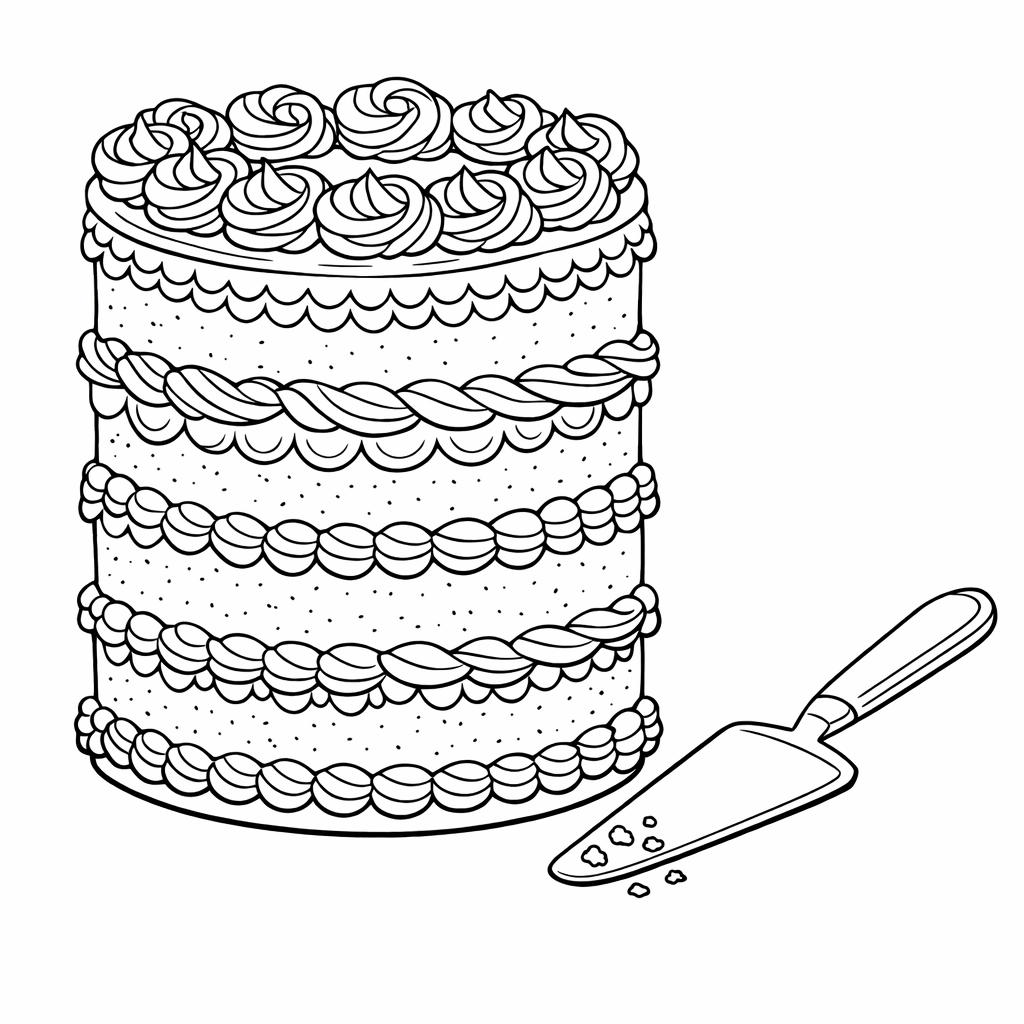 Cake Coloring Page — Object Only: A Cute Cake With Clean Outlines, No Background