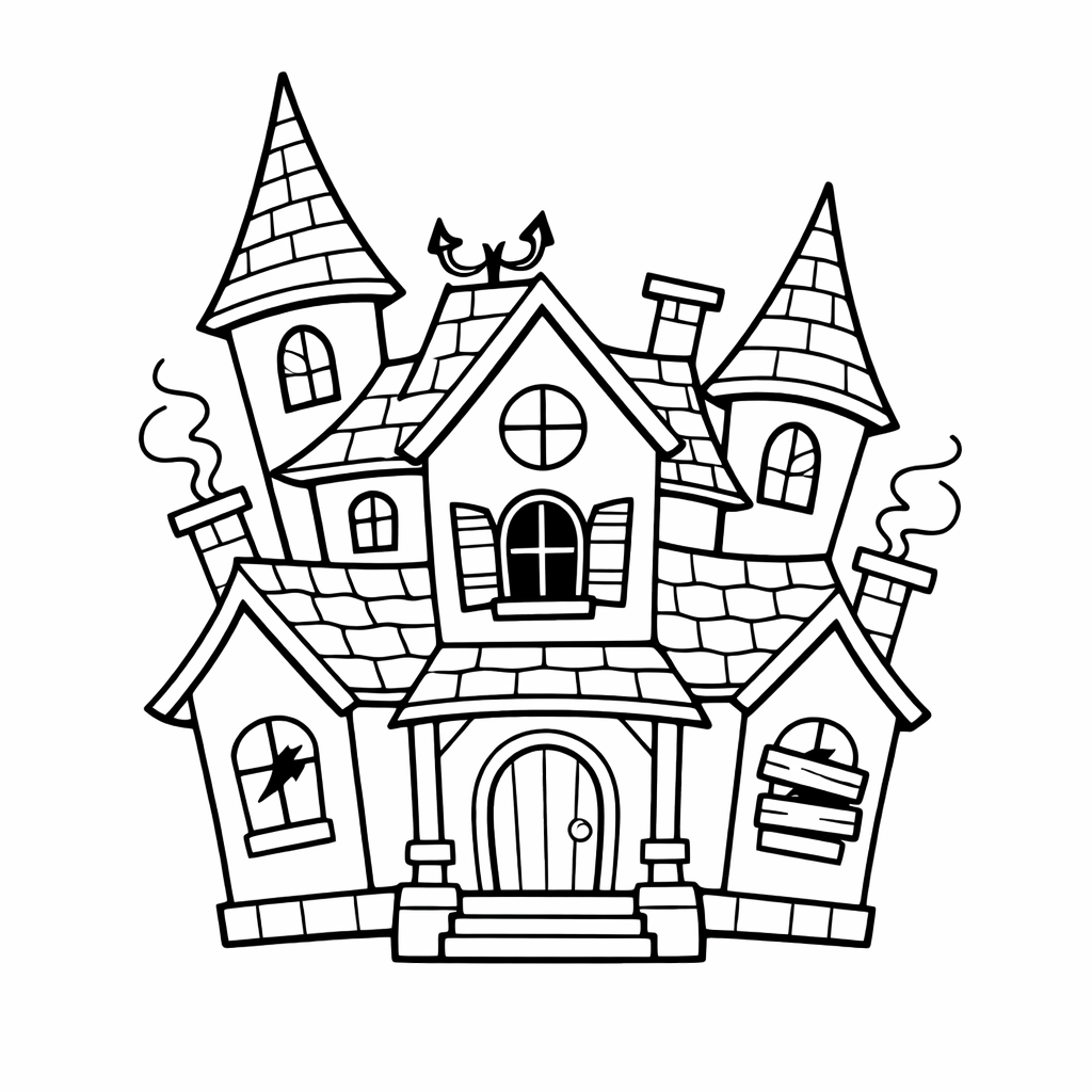 Free printable haunted house coloring page for kids. A Friendly Skeleton Welcomes Kids At The Haunted…. Print in one click, Level: beginner.