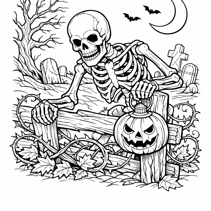 Skeleton Coloring Page — Skeleton And Pumpkin