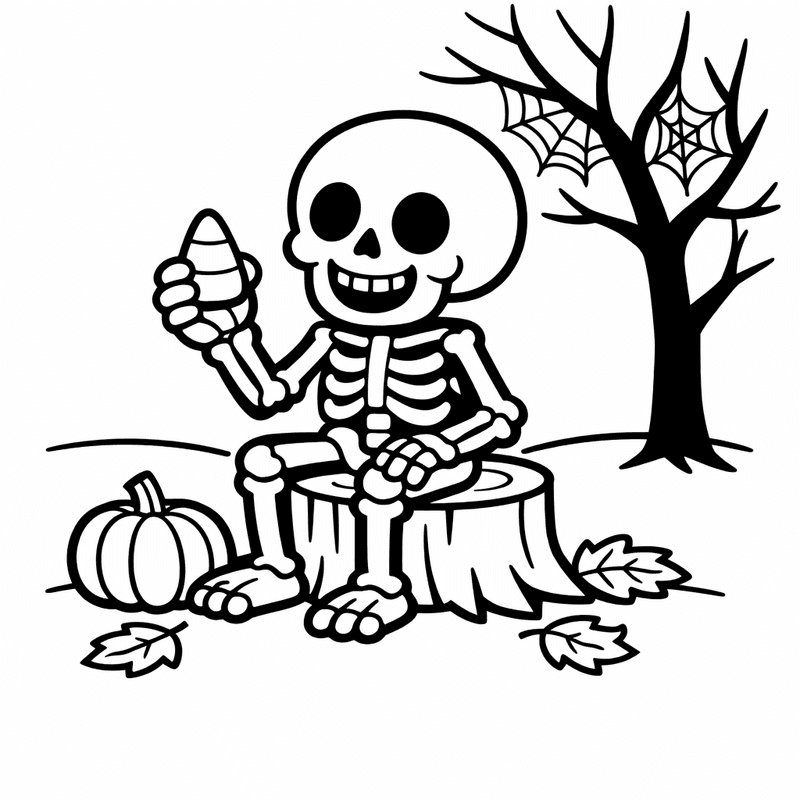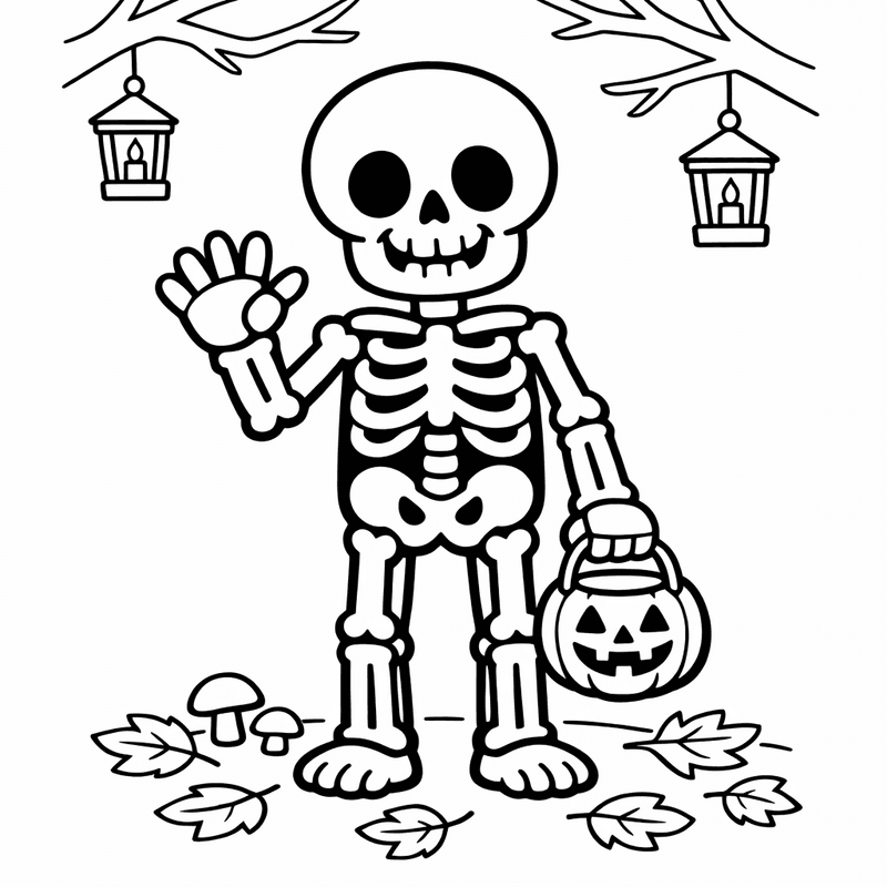 Skeleton Coloring Page — Object Only: A Cute Skeleton With Clean Outlines, No Background