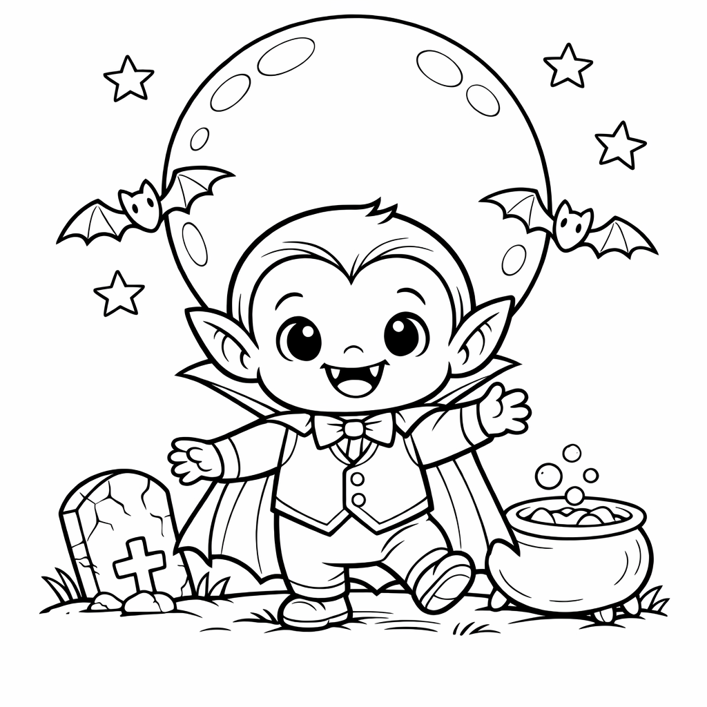 Free printable vampire coloring page for kids. Vampire Peeking Out From Behind A Haunted Castle…. Print in one click, Level: advanced.