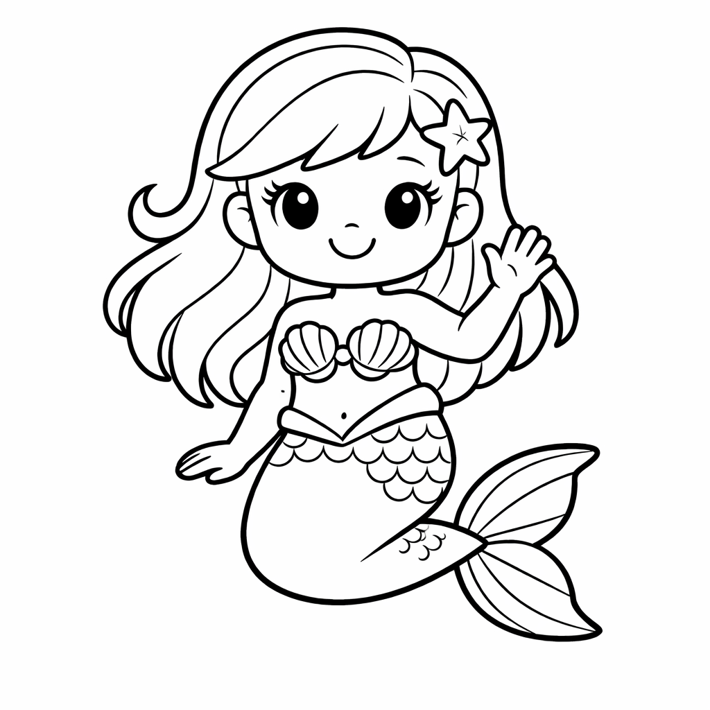 Mermaid Coloring Page — Object Only: A Cute Mermaid With A Flower Crown, Simple Clean Outlines, No Background
