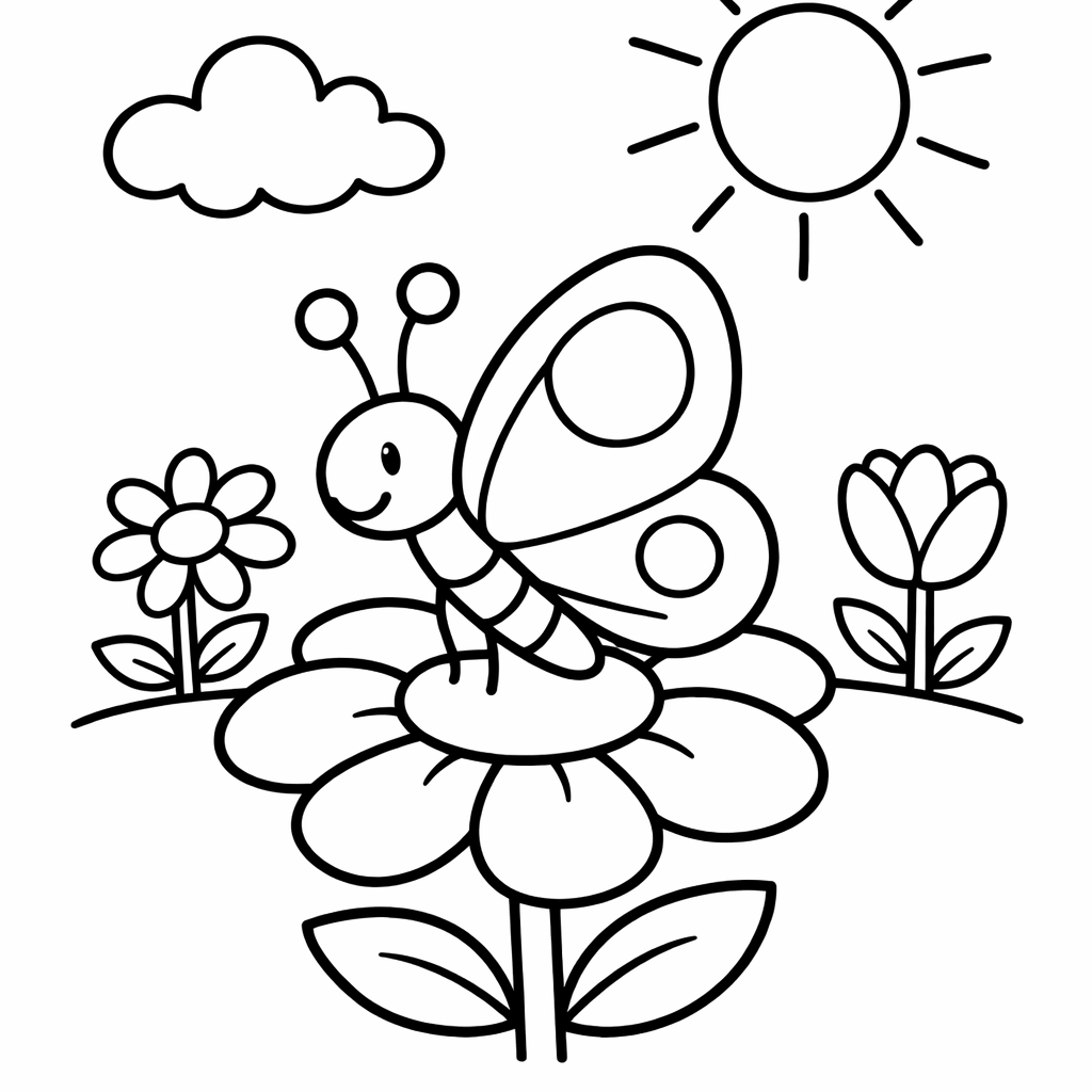 Butterfly Coloring Page — Object Only: A Cute Butterfly With Clean Outlines, No Background