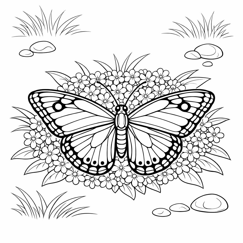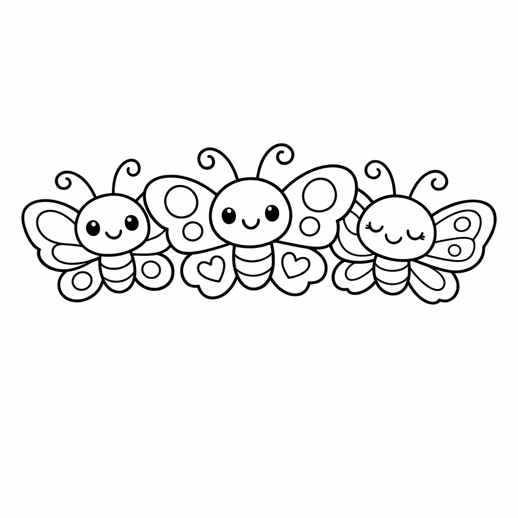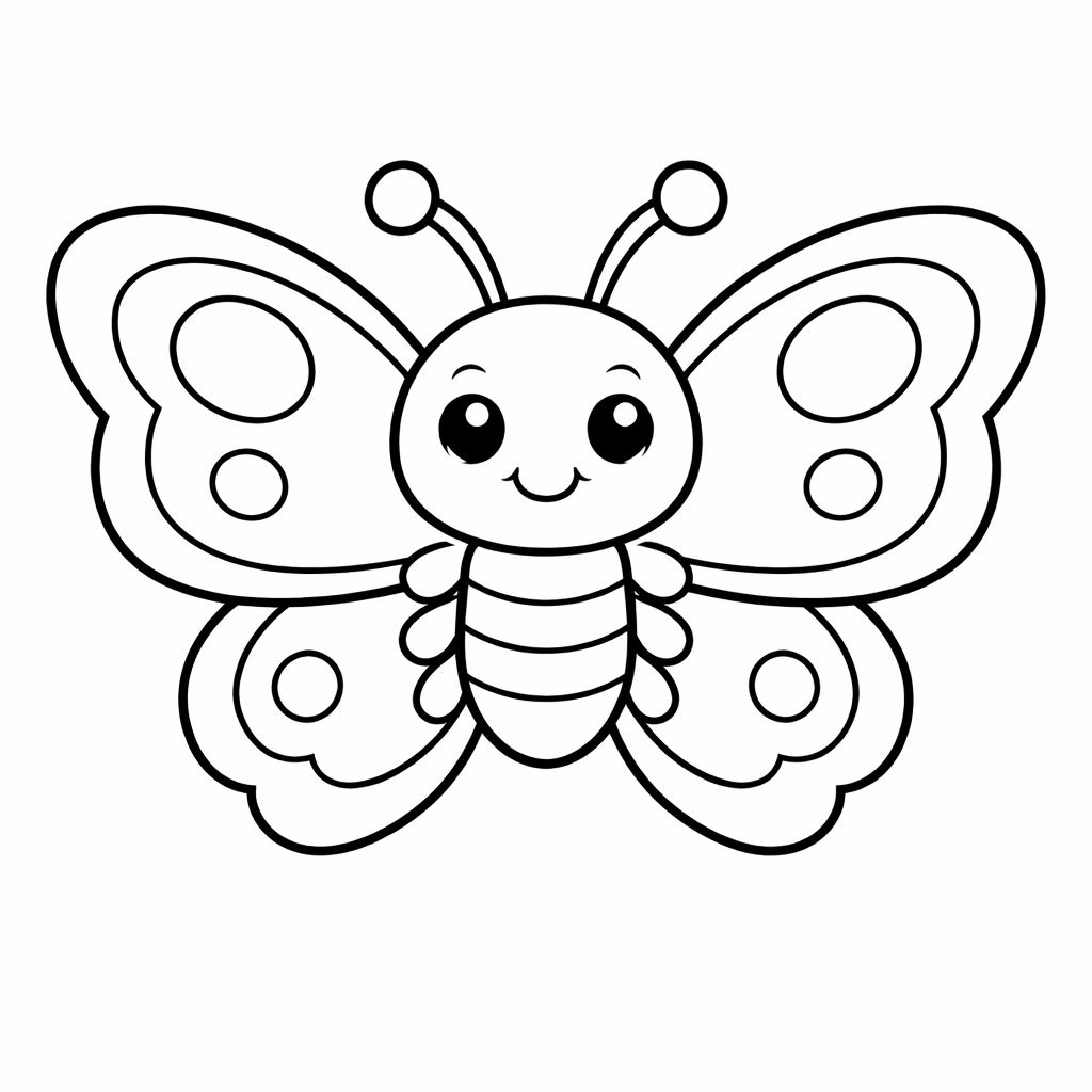 Free printable butterfly coloring page for kids. Object Only: A Cute Butterfly With Clean Outlines, No Background. Print in one click, Level: beginner.