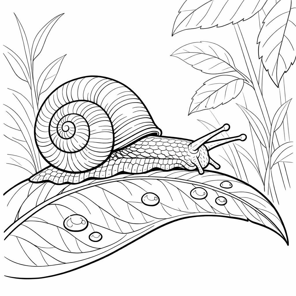 Free printable snail coloring page for kids. Snail On Leaf. Print in one click, Level: advanced.