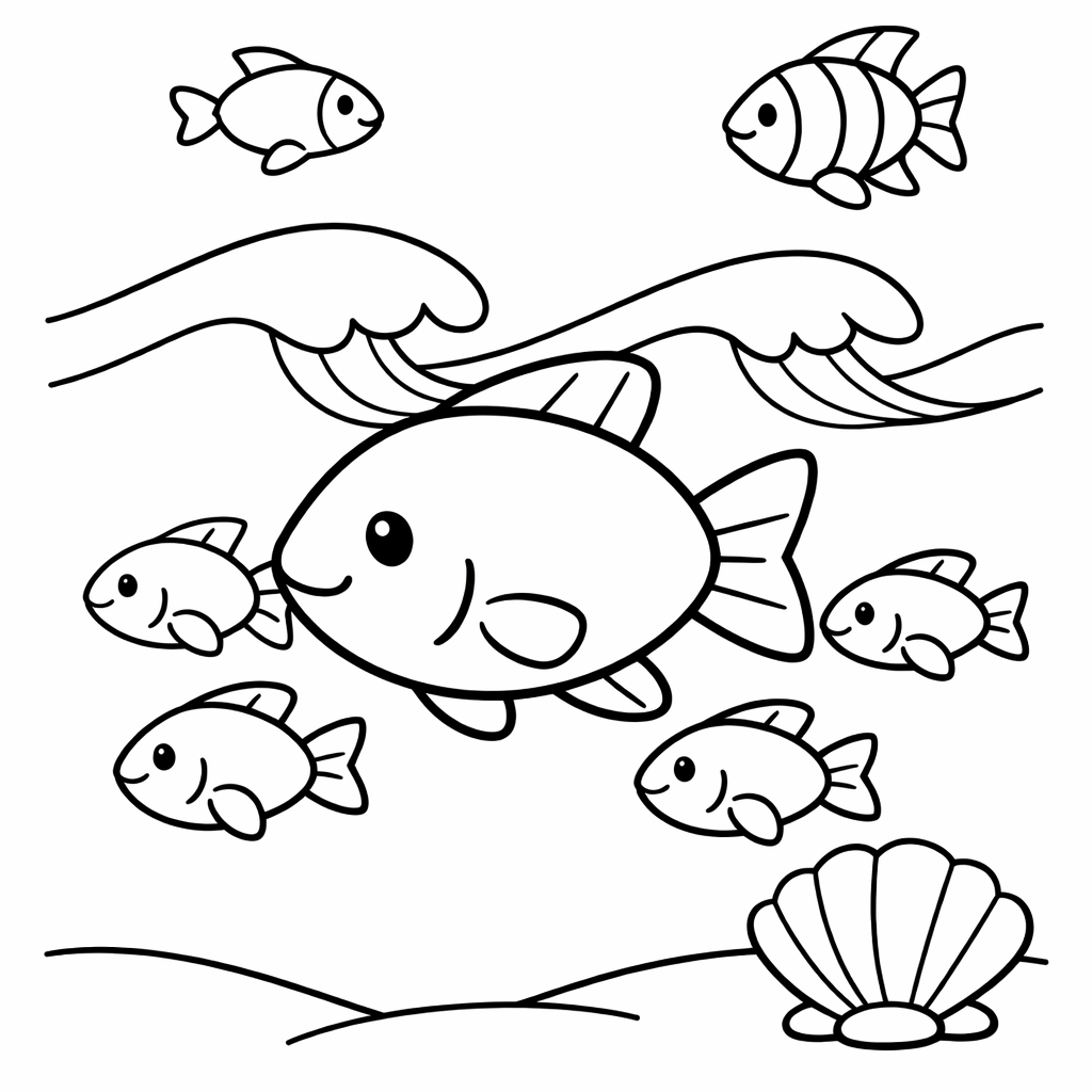 Fish Coloring Page — Object Only: A Cute Fish With Clean Outlines, No Background