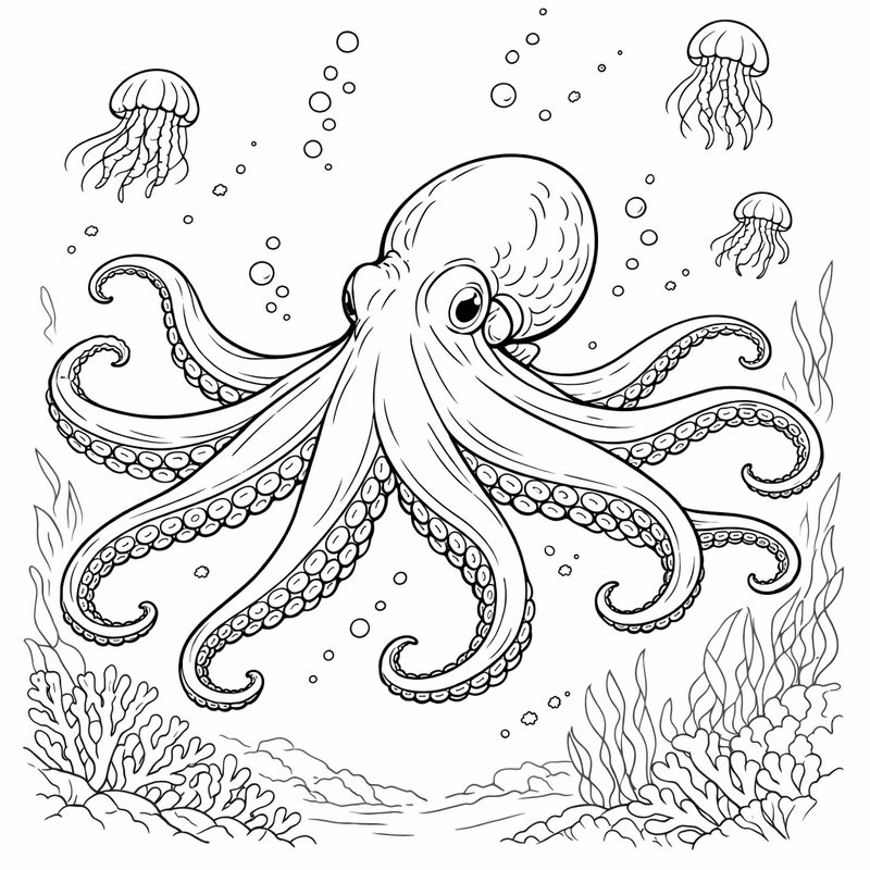 Octopus Coloring Page — Object Only: A Cute Octopus With Clean Outlines, No Background