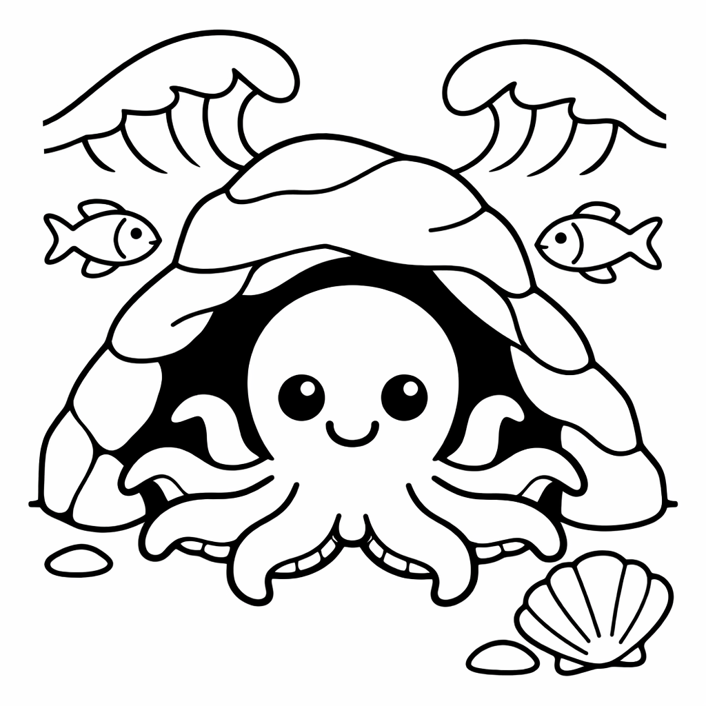 Octopus Coloring Page — Octopus In Cave