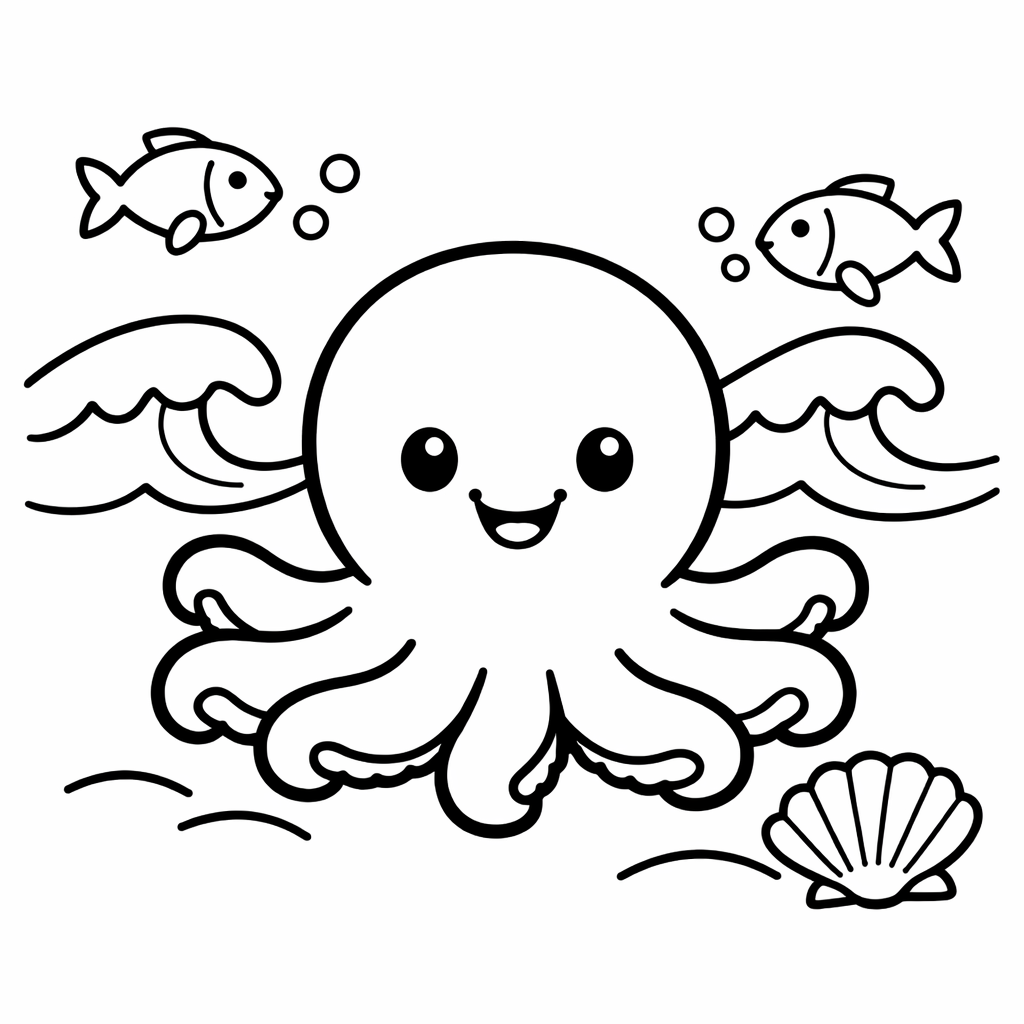 Octopus Coloring Page — Object Only: A Cute Octopus With Clean Outlines, No Background