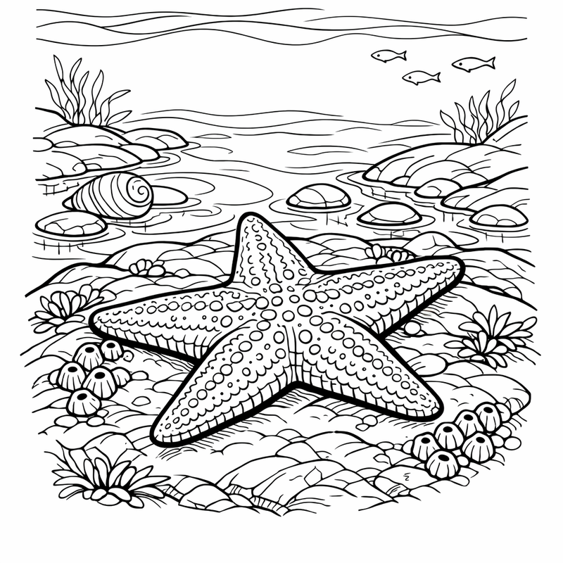 Free printable starfish coloring page for kids. Starfish On Sand. Print in one click, Level: advanced.