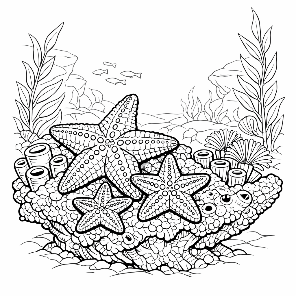 Free printable starfish coloring page for kids. Object Only: Two Or Three Starfishs Side By Side, Simple And Adorable, No Background. Print in one click, Level: advanced.