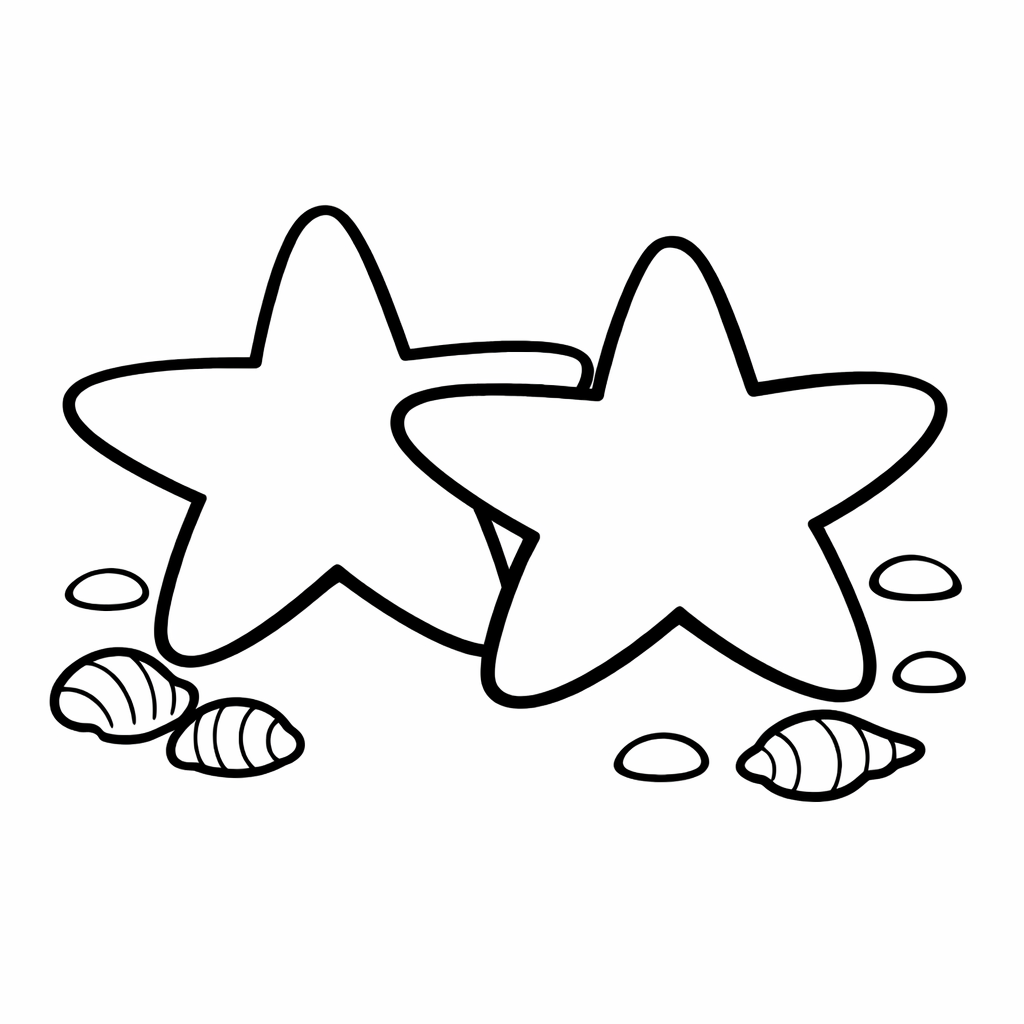 Starfish Coloring Page — Object Only: Two Or Three Starfishs Side By Side, Simple And Adorable, No Background