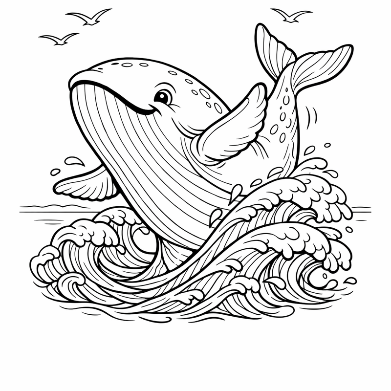 Whale Coloring Page — Whale And Waves
