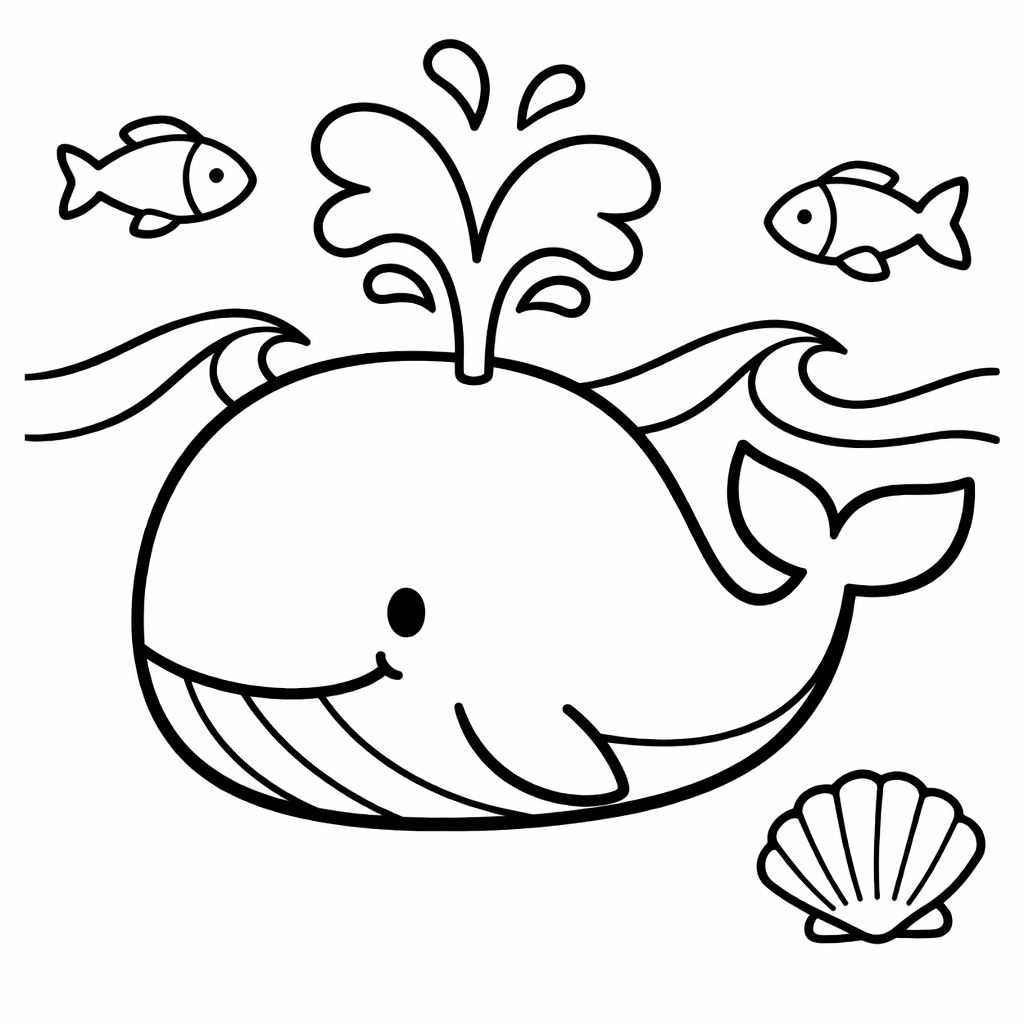 Whale Coloring Page — Object Only: A Cute Whale With Clean Outlines, No Background