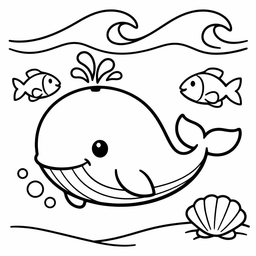 Whale Coloring Page — Object Only: A Cute Whale With Clean Outlines, No Background
