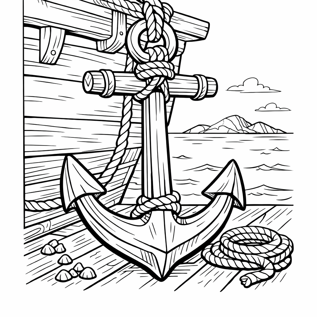 Anchor Coloring Page — Object Only: A Cute Anchor With Clean Outlines, No Background