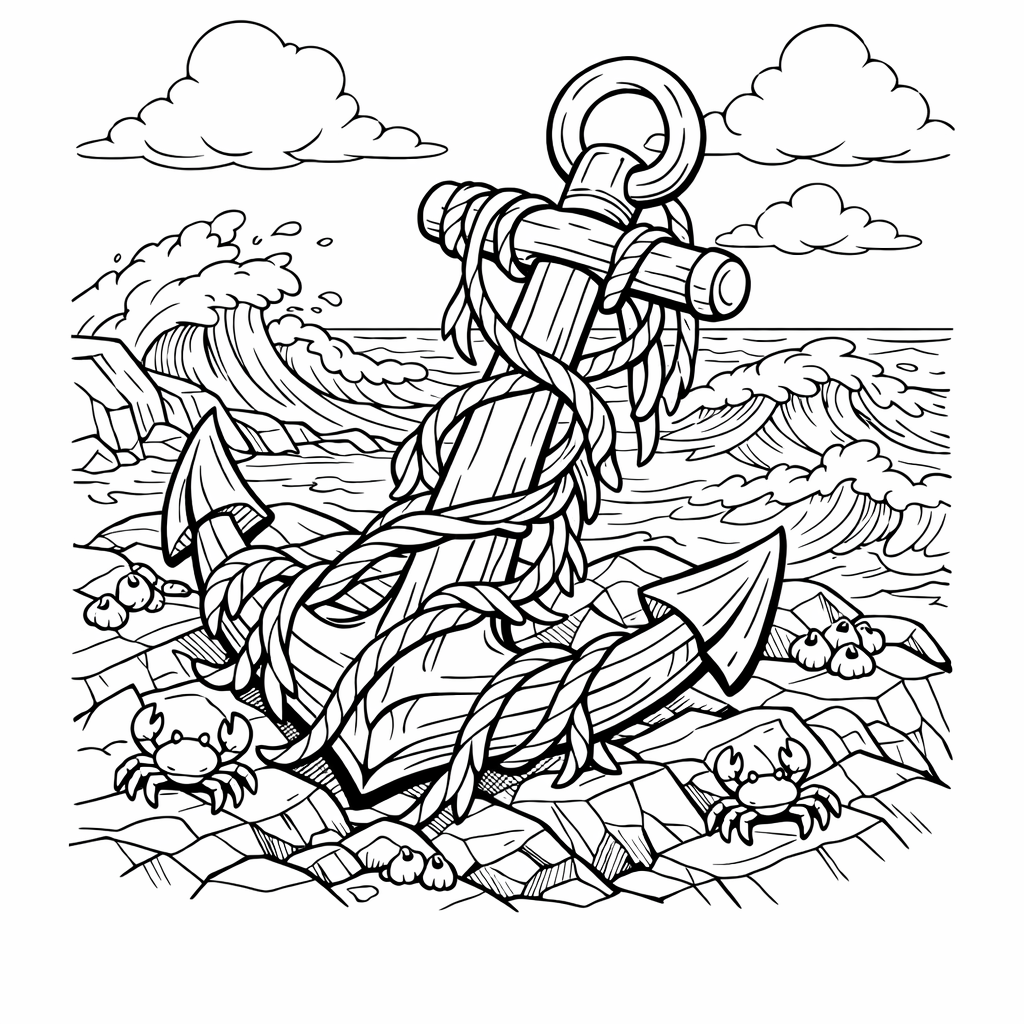 Anchor Coloring Page — Anchor And Waves