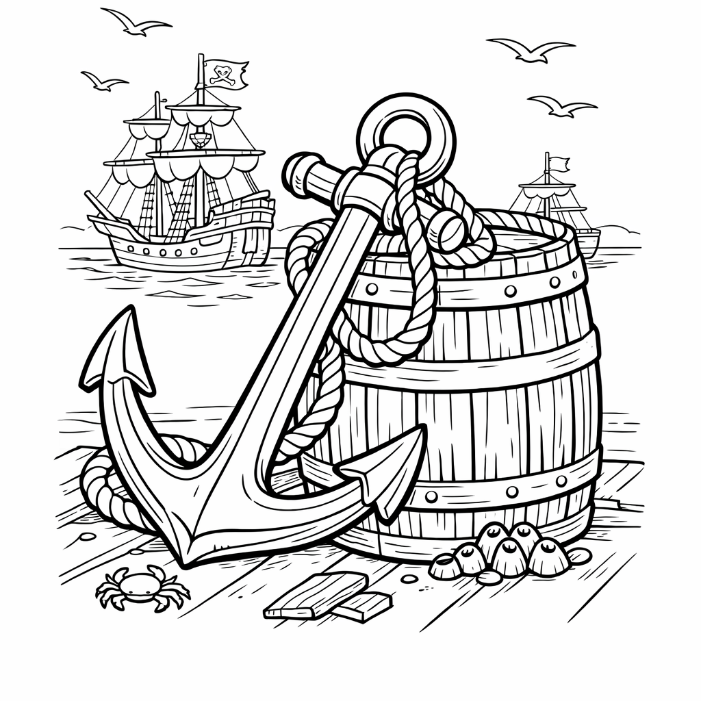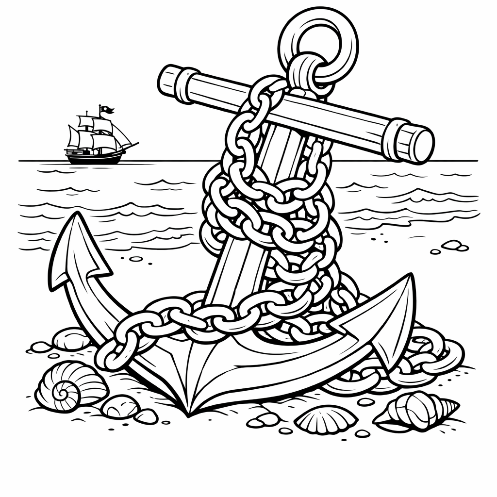 Anchor Coloring Page — Anchor On Ship
