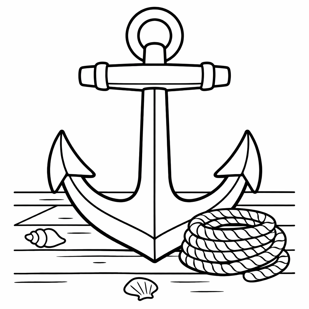 Anchor Coloring Page — Object Only: A Cute Anchor With Clean Outlines, No Background