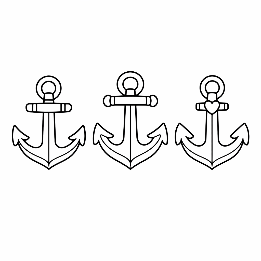 Anchor Coloring Page — Object Only: Two Or Three Anchors Side By Side, Simple And Adorable, No Background