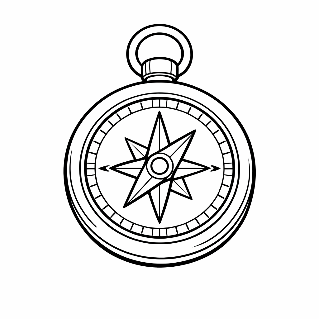 Compass Coloring Page — Object Only: A Cute Compass With Clean Outlines, No Background