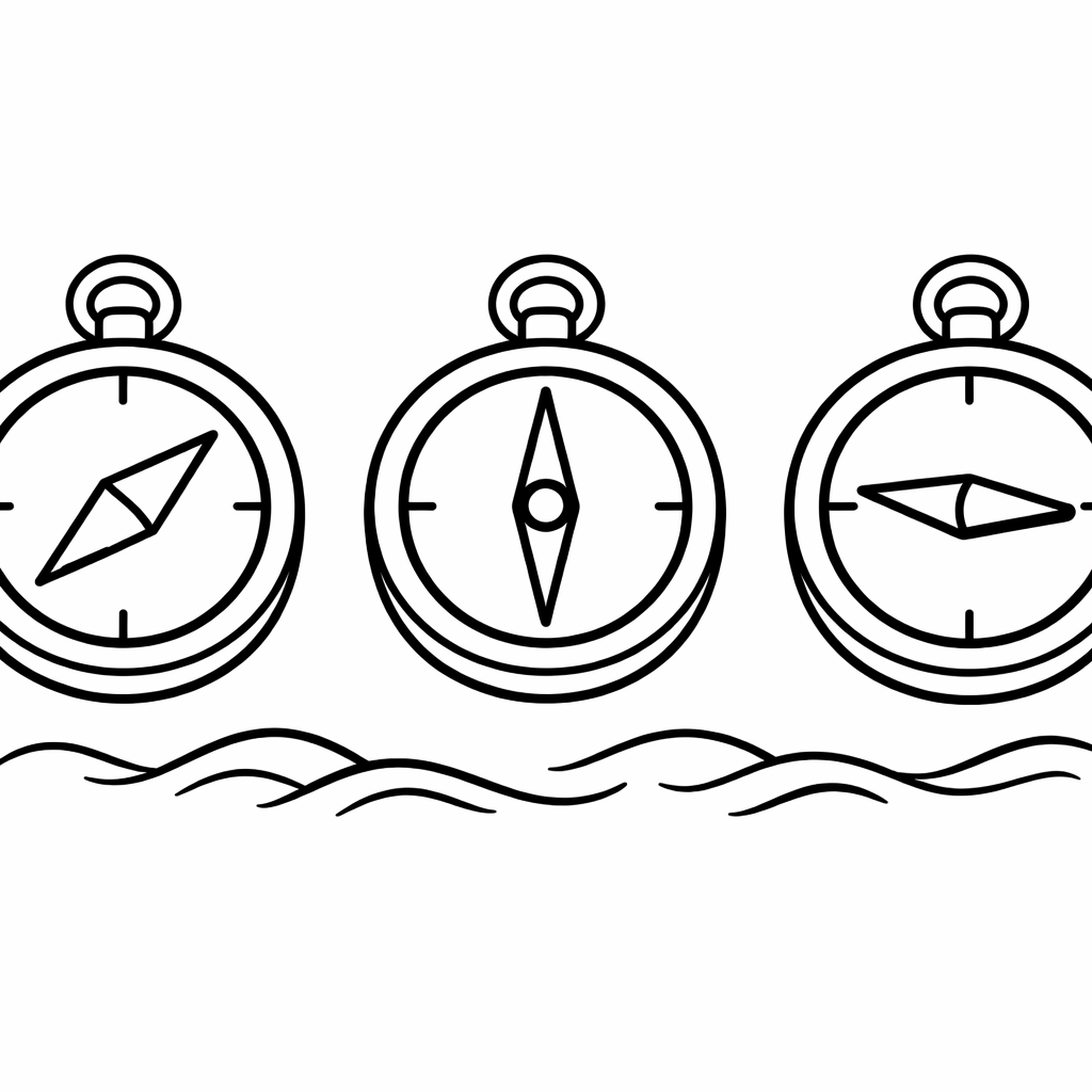 Compass Coloring Page — Object Only: Two Or Three Compasss Side By Side, Simple And Adorable, No Background