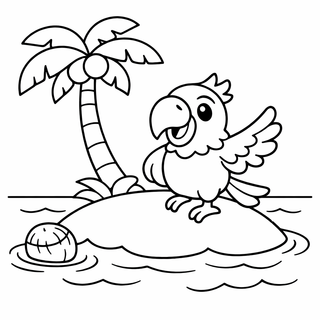 Island Coloring Page — Object Only: A Cute Island With Clean Outlines, No Background
