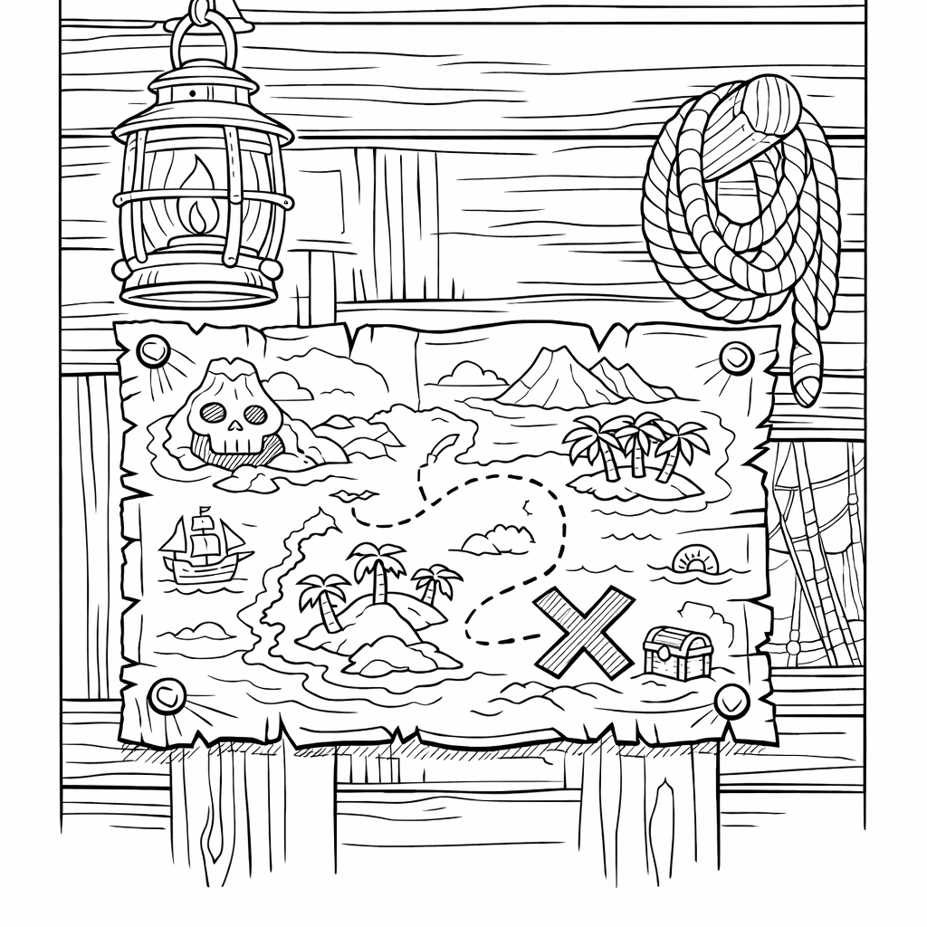 Map Coloring Page — Treasure Map