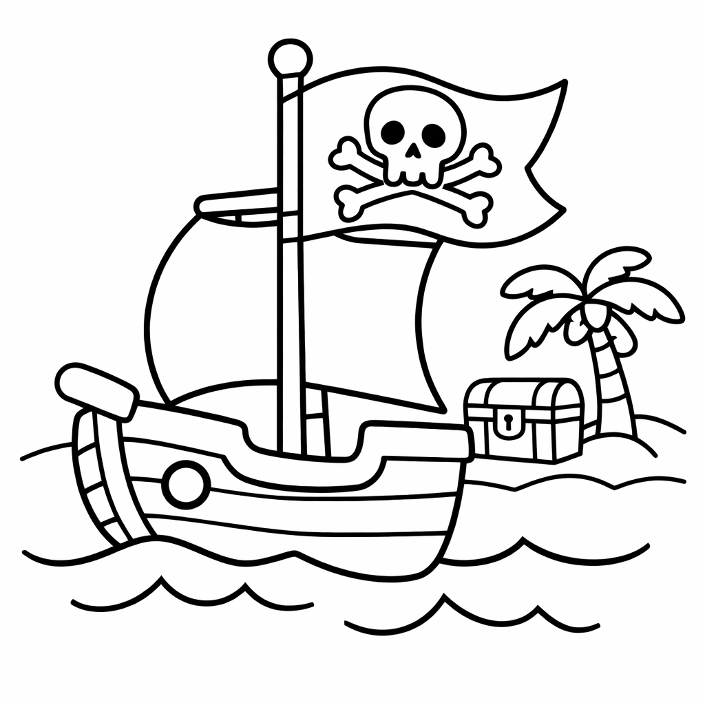 Pirate Ship Coloring Page — Object Only: A Cute Pirate Ship With Clean Outlines, No Background