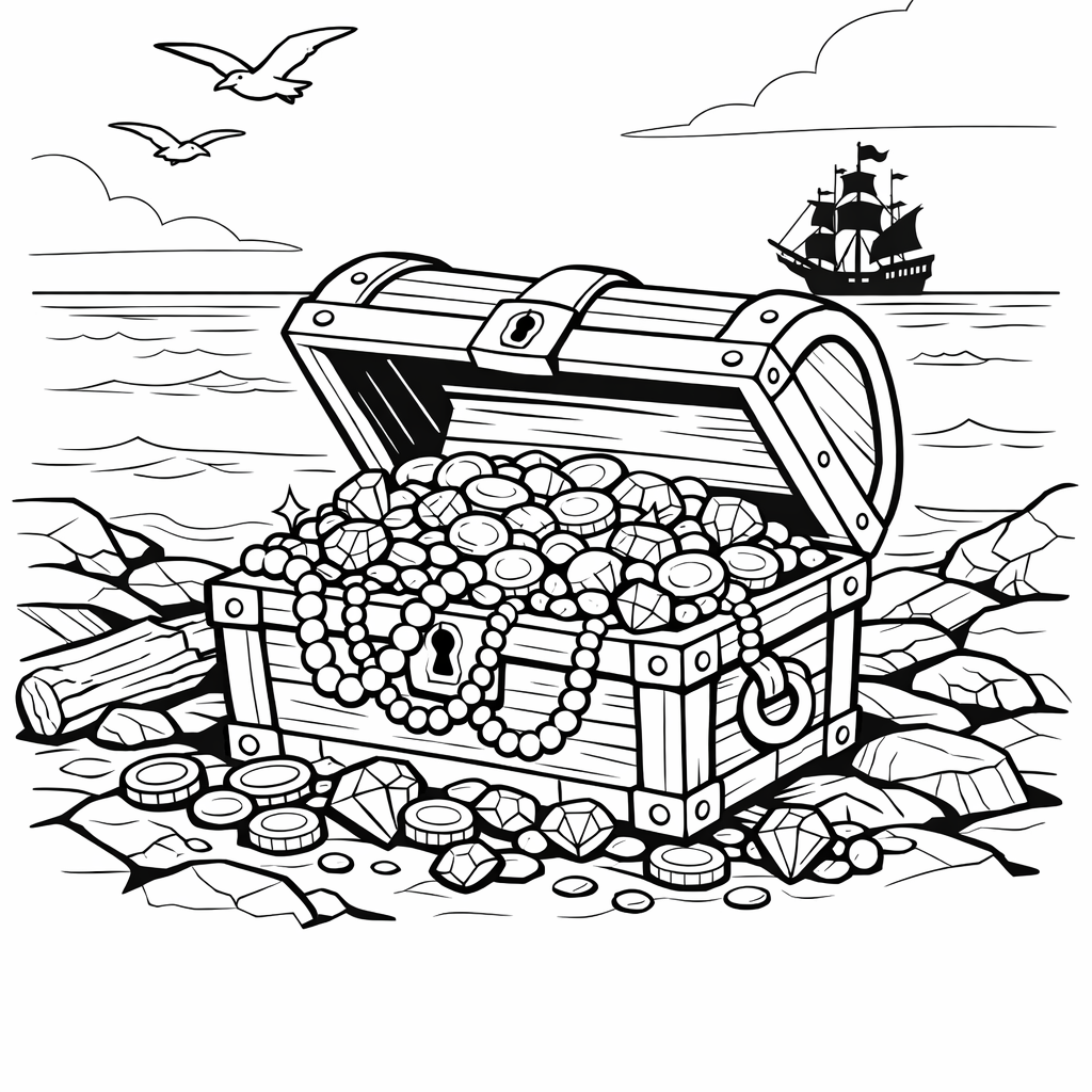 Treasure Chest Coloring Page — Object Only: A Cute Treasure Chest With Clean Outlines, No Background