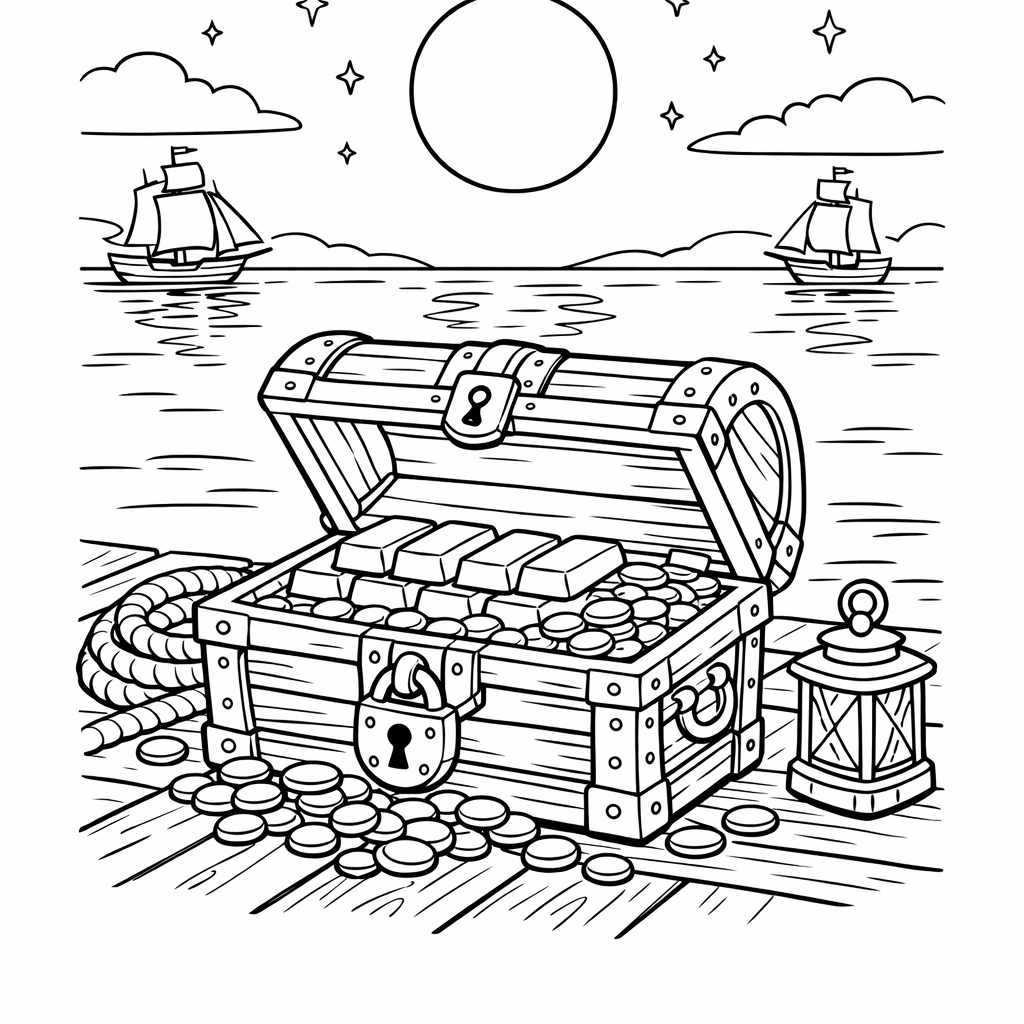 Treasure Chest Coloring Page — Object Only: A Cute Treasure Chest With Clean Outlines, No Background