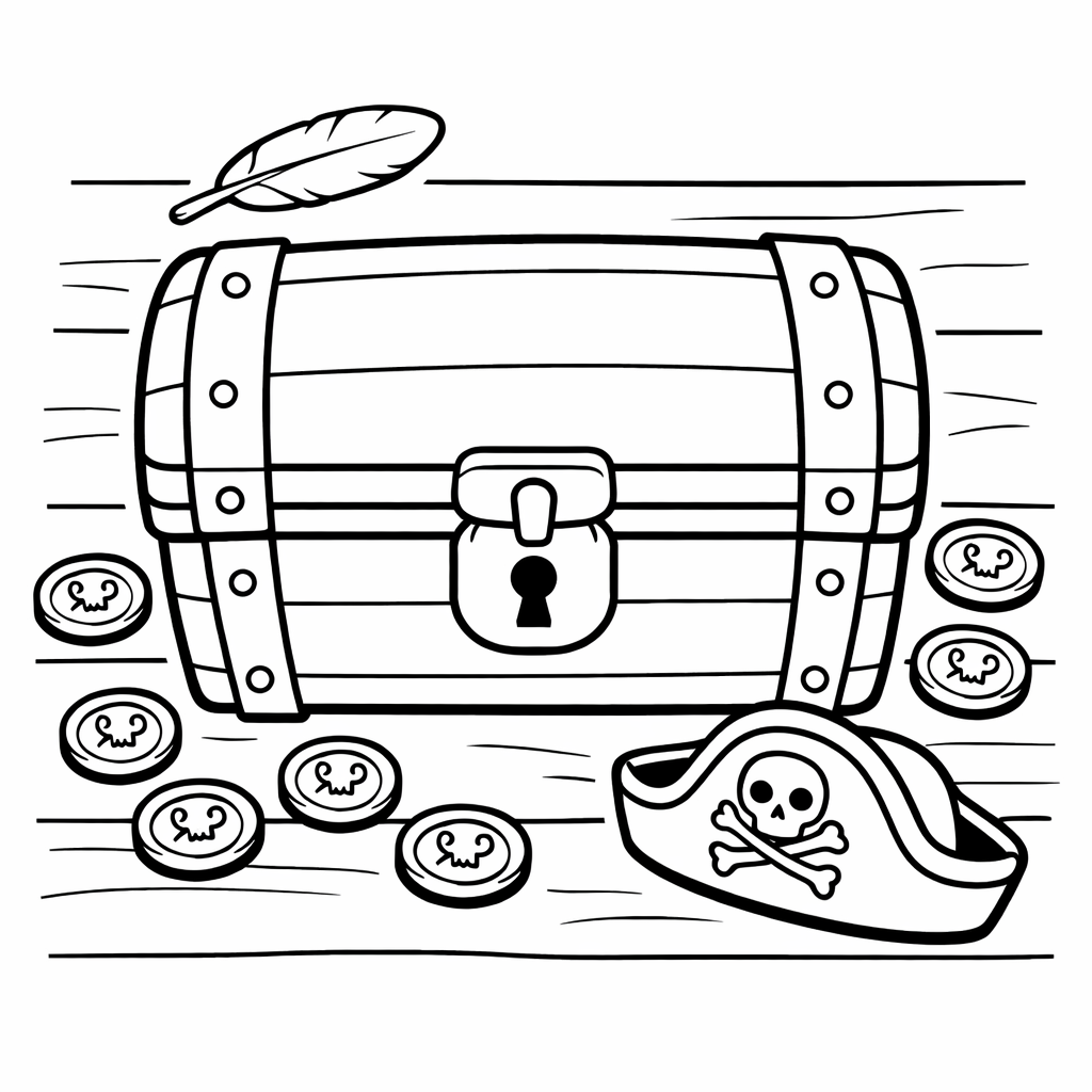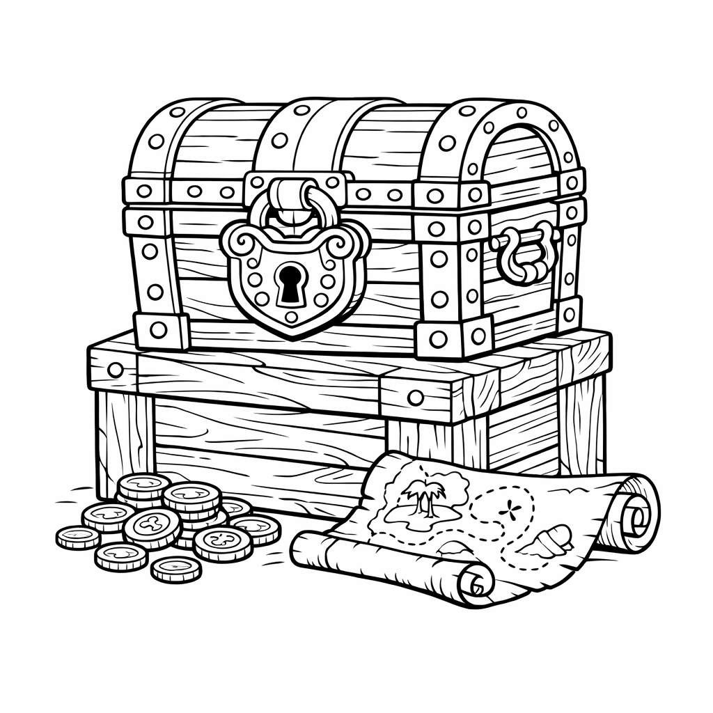 Treasure Chest Coloring Page — Object Only: A Cute Treasure Chest With Clean Outlines, No Background